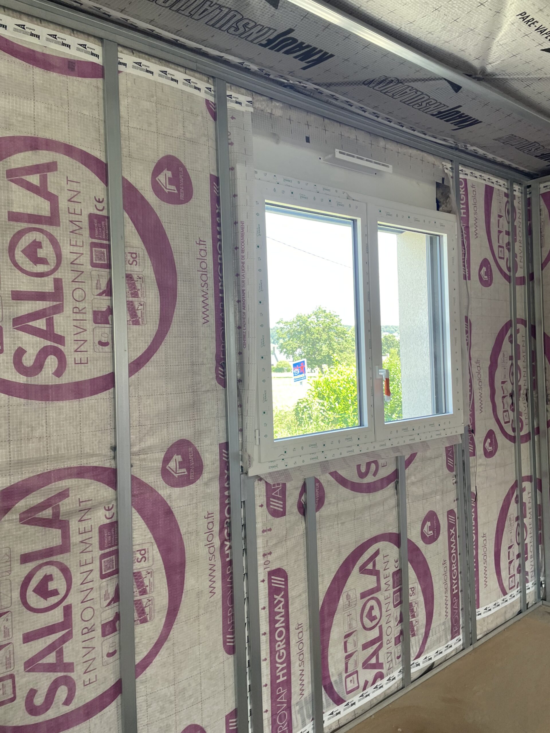 Associée à une isolation en panneaux de Biofibtrio (mélange de chanvre, coton et lin) et d’une membrane Aerovap hygromax, nous arrivons à un très bon niveau de performance thermique.