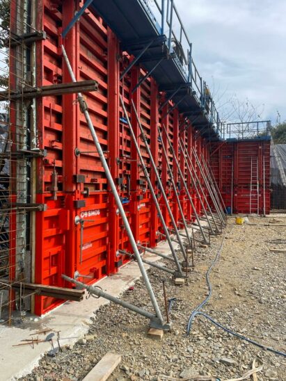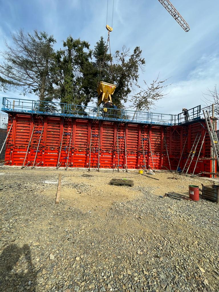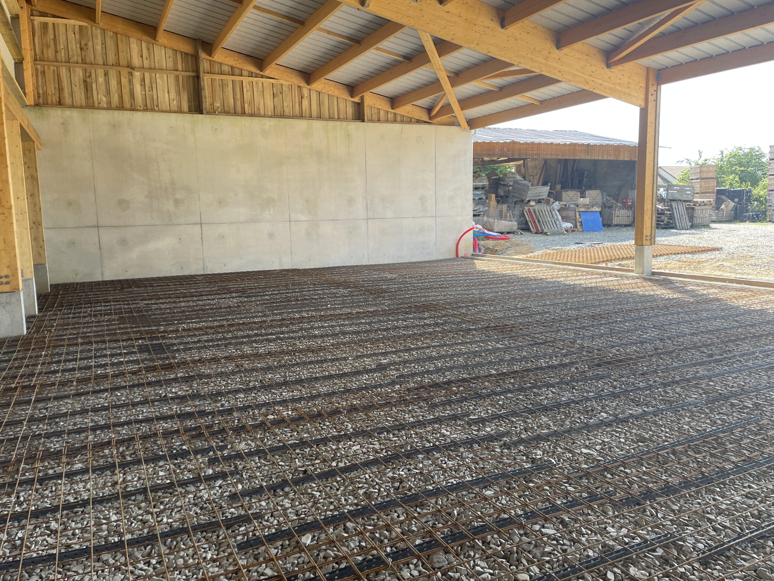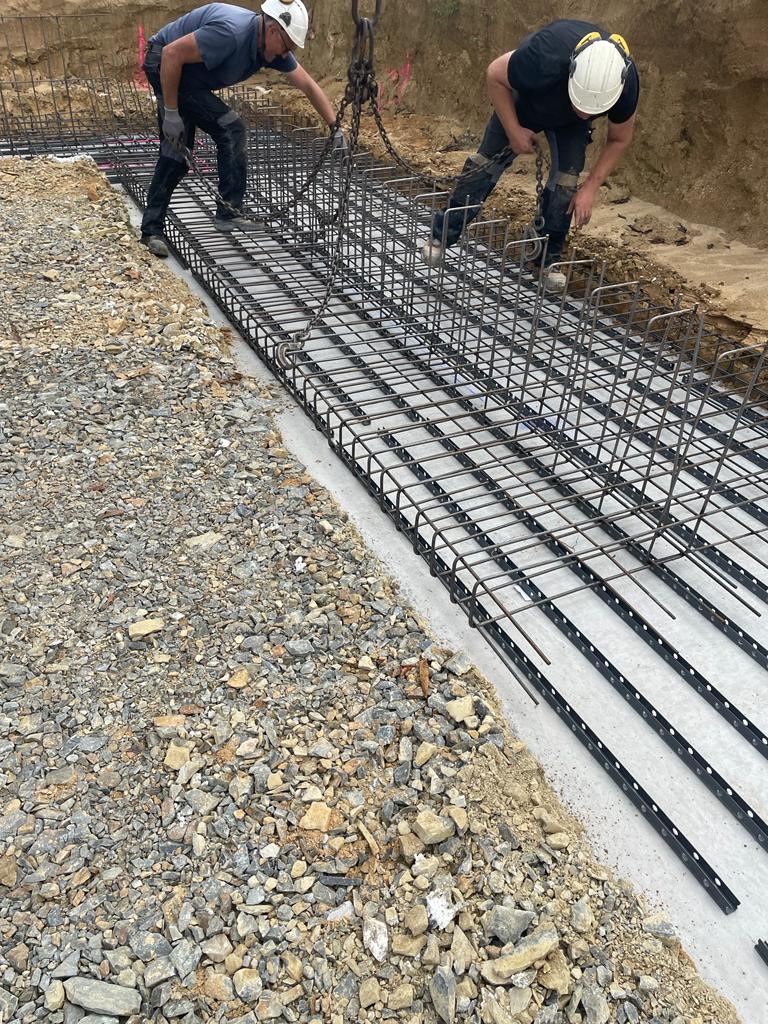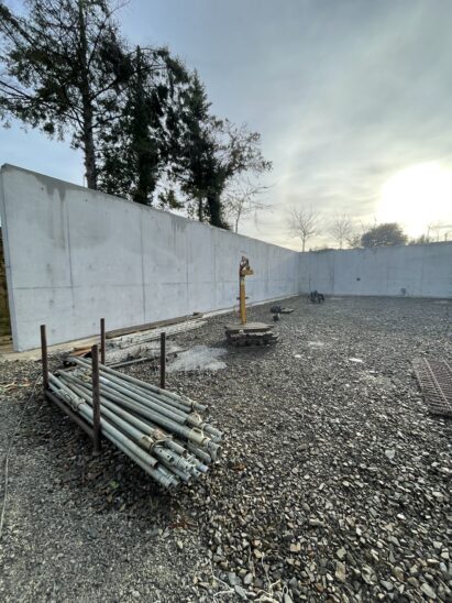 675m² au sol, 50m3 de béton pour les fondations, 320m² de murs en banché.