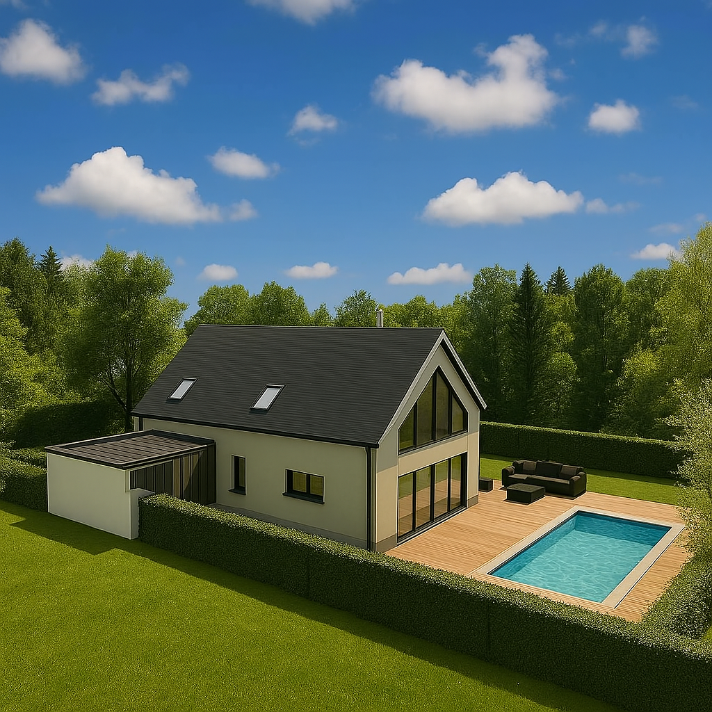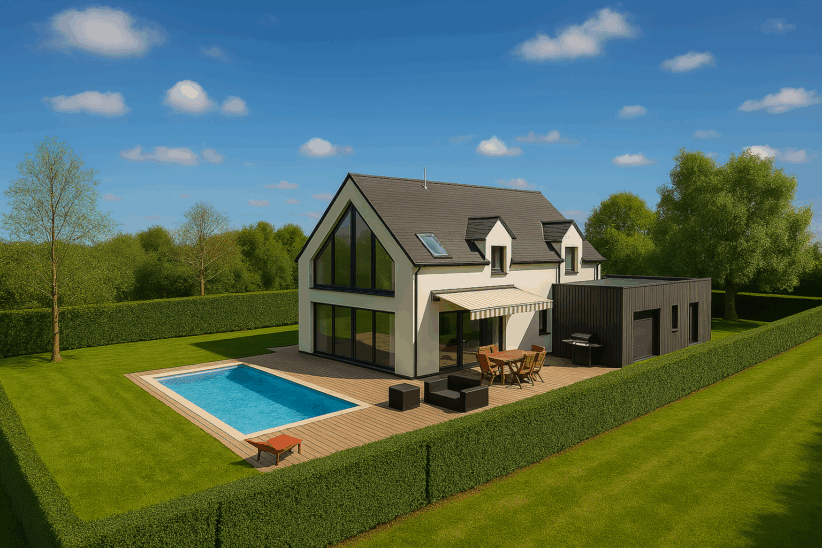 Réalisation d’une construction neuve RE2020 de 186m² habitables, et d’une piscine.
