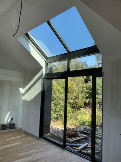 Une grande verrière a pris place en façade Nord, pour faire rentrer un maximum de lumière.